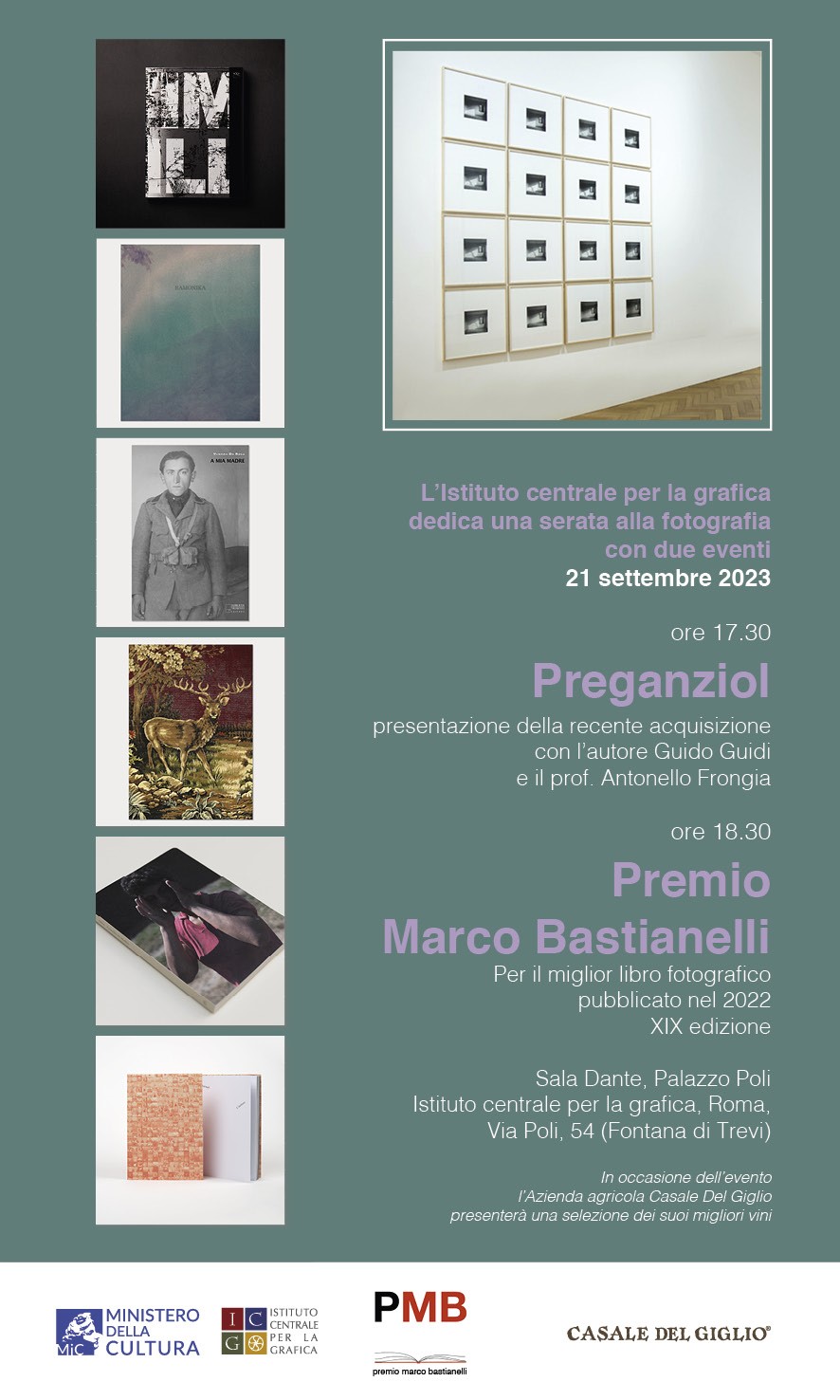 At 6.30 p.m. there will be the award ceremony for the 19th edition of the Marco Bastianelli Prize for photography books with the participation of the authors and the jury.